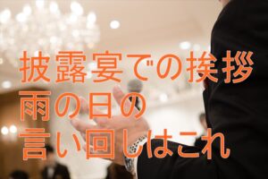 雨の日の言い回しがわかったので、雨降って地固まるは使わないようにし、結婚式当日が雨だった場合、お足元の悪い中という言い回しを入れてスピーチをするように構成してみます。