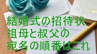 披露宴の準備結婚式の招待状祖母と叔父先なのは?宛名は連名でいいの?書き方は? 伯父さんと同居しているおばあちゃんへ連名で招待状を送る場合、伯父さんが先?祖母が先なの?男だから伯父さんが先?年長者だから祖母が先?どのように考えたらいいのか、連名の場合の書き方などをご紹介します。参考にしてみてくださいね。 2015.11.24披露宴の準備